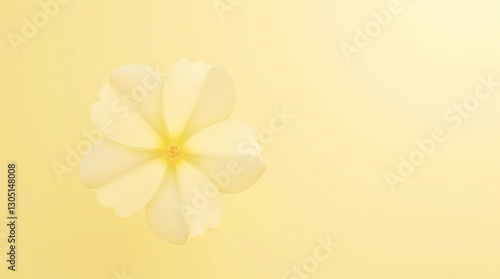 © Natsumae, Naklejka premium Softly blooming, a pale yellow flower unfolds its delicate petals against a muted, pastel yellow background. Serenity and calm.