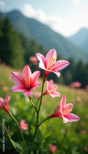 Fototapeta premium Softly blooming Alstroemeria in a serene landscape, calm, alstroemeria, nature