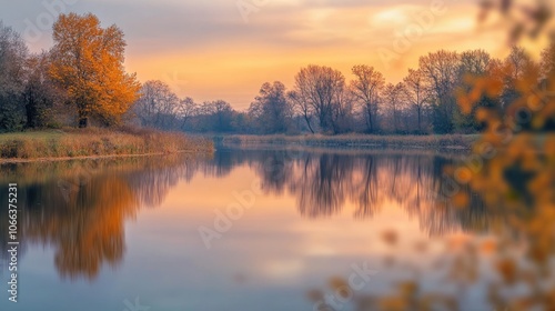© Holo Frame, Fototapeta premium Softly blurred autumn landscape during sunset