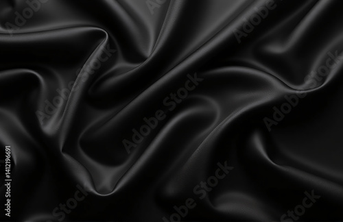 Obraz premium Softly Draped, Shiny Black Satin Provides A Luxurious Background With Ample Copy Space And Flat Lay Versatility In Wide Format.