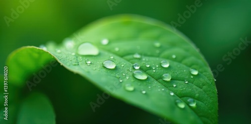 Fototapeta premium Softly falling water droplets on a leaf , leaf, watercolor