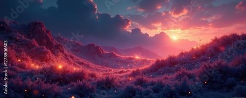 © PHOUVONG , Naklejka premium Softly glowing flames illuminate an ethereal landscape, dreamy, subtle