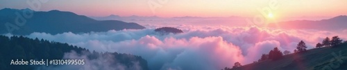© OneWayPhoto, Fototapeta premium Softly glowing mist floats over a serene landscape, serenity, dreamy, mist