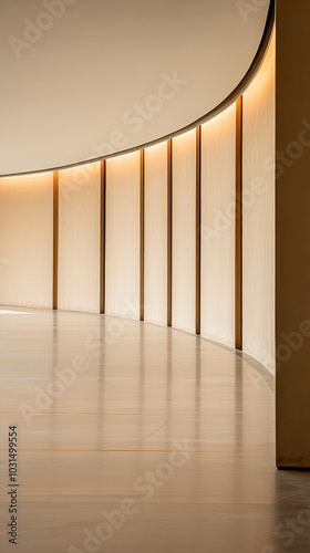 © JuanM, Obraz premium Softly lit curved hallway in a modern architectural space during daytime
