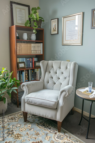 © Lucile, Fototapeta premium Softly Lit, Inviting Psychotherapy Office Promoting Healing and Understanding