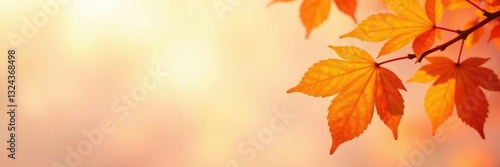 © PHOUVONG , Fototapeta premium Softly lit orange leaves on a light background, orange, leaves
