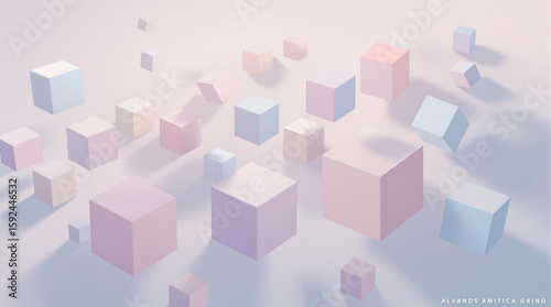 Obraz premium Softly lit pastel cubes of varying sizes float against a pale background,...