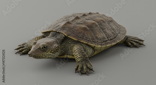 © arazka, Fototapeta premium Softshell Turtle Resting Brown Shell on Gray Background