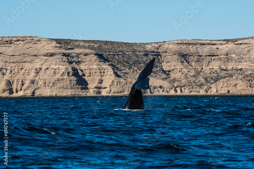 Fototapeta premium Sohutern right whale lob tailing, endangered species, Peninsula Valdes, Patagonia,Argentina