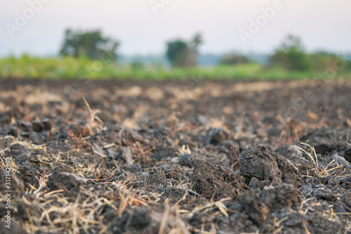 Fototapeta premium Soil prepared by farmers for crop cultivation.