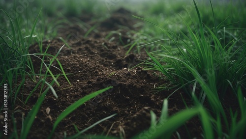 Fototapeta premium Soil with grass depicted in a flat style, showcasing green grass alongside...