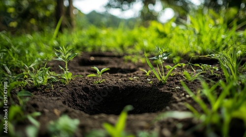 Fototapeta premium Soil with Seedling Holes