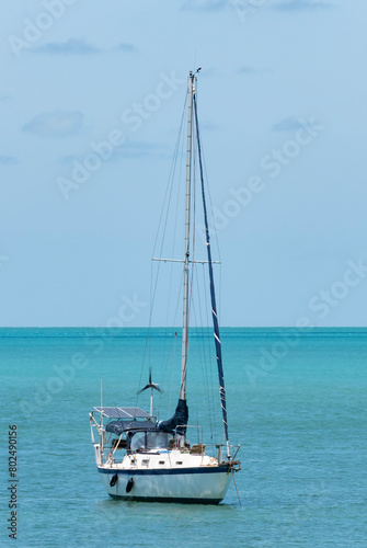 © chiyacat, Fototapeta premium Solar and Wind Powered Sailboat Near the Shore of Marathon, Florida