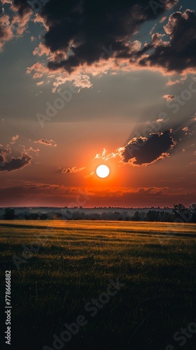 Obraz premium Solar eclipse casting over American heartland, soft light, panoramic, serene
