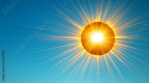Fototapeta premium Solar eclipse, sun rays, blue sky, energy