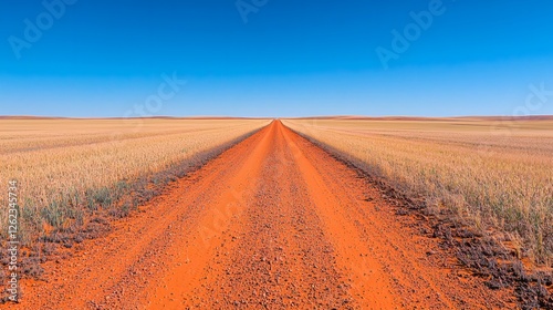 © anantachat, Fototapeta premium Solar farm with rows of photovoltaic panels under a clear blue sky, renewable energy source, clean power generation, stock photo with side copy space.