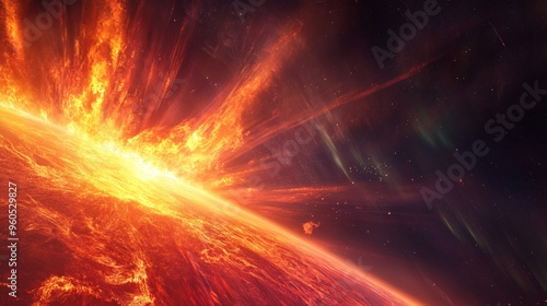 © pattaphorn, Fototapeta premium Solar Flare Eruption in Space