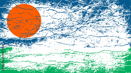 © Vector mix, Naklejka premium solar landscape. sunset. sun behind the blue clouds. green grass. abstract background pattern. grunge texture. vector illustration.