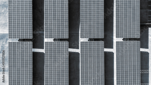 Fototapeta premium Solar panel array generating clean renewable energy on roof top