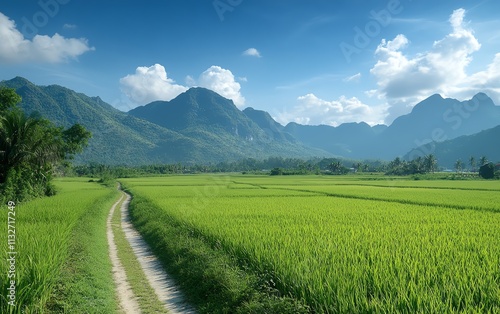 © Thanaseth, Obraz premium Solar panel array on a grassy field with clear blue skies