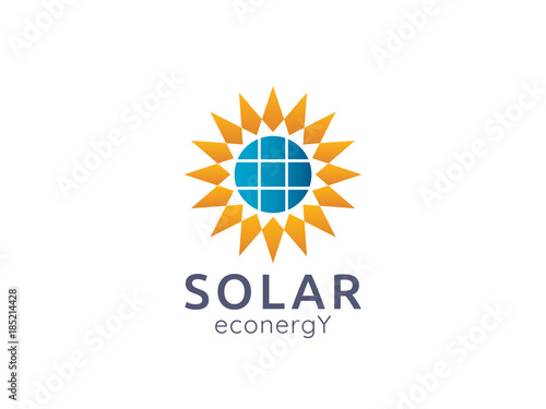 Fototapeta premium Solar panel energy logo icon. zero waste concept design