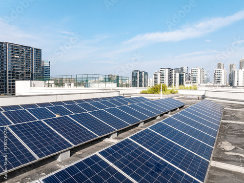 © zhu difeng, Fototapeta premium solar panel on roof top of apartment
