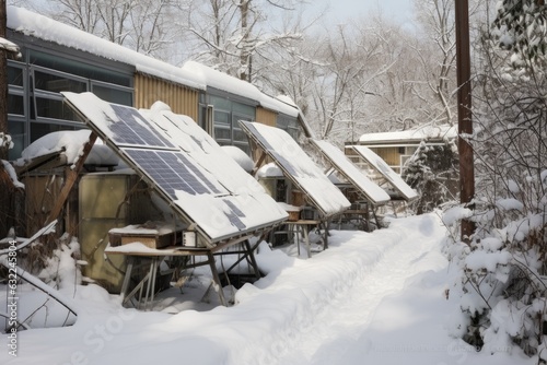 Fototapeta premium solar panels covered in snow during winter