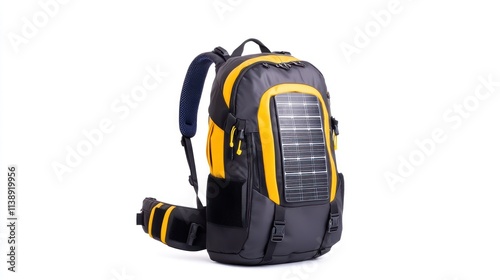 Fototapeta premium Solar-powered backpack designed for outdoor activities and travel.