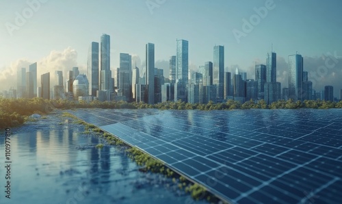 Fototapeta premium Solar-powered cities with advanced energy systems, sustainable future...