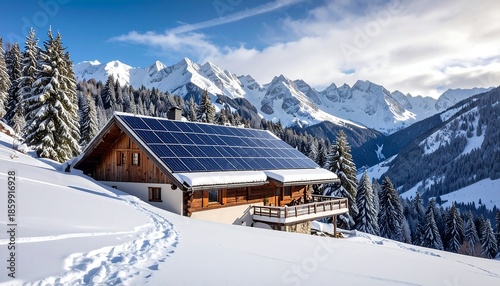 Fototapeta premium Solar-Powered Mountain Retreat - Sustainable Living in the Alps.