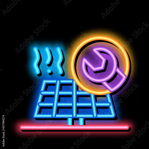 © PikePicture, Obraz premium solar repair neon light sign vector. Glowing bright icon solar repair sign. transparent symbol illustration