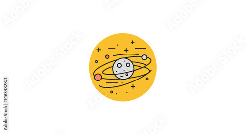 © Khofi, Fototapeta premium Solar System Icon: Yellow Circle with Planet and Orbiting Satellites