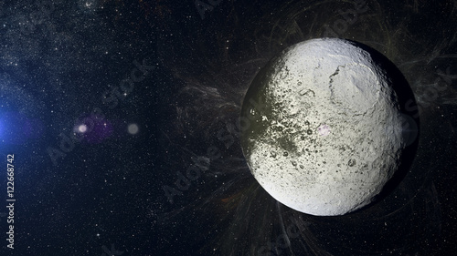 Naklejka premium Solar system planet Iapetus on nebula background.