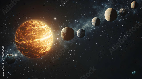 Naklejka premium Solar System Planets Orbiting Star