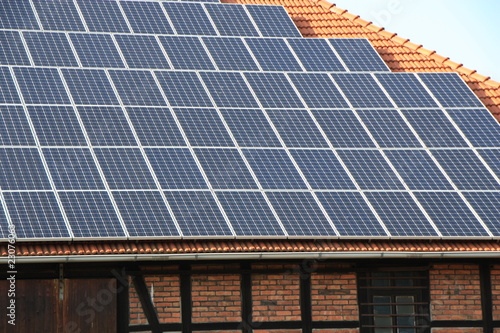 © ASonne30, Naklejka premium Solaranlage auf einen Scheunendach