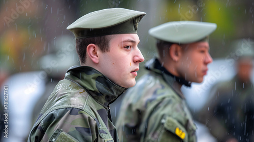 © VicPhoto, Fototapeta premium Soldados en Formación Militar