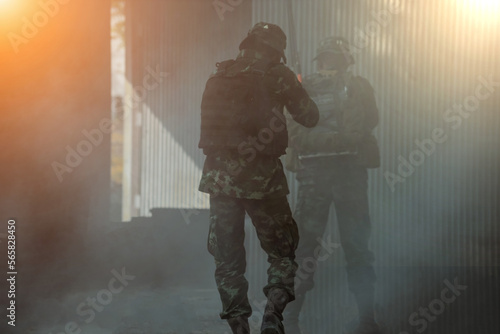 © Chinnachote, Fototapeta premium soldier in action with rifle
