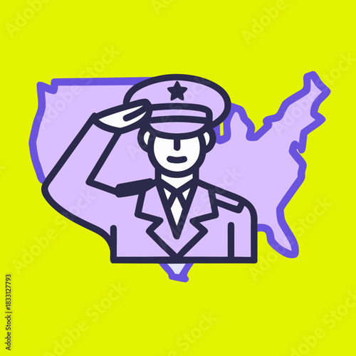 Obraz premium Soldier saluting in front of U S map minimal line art
