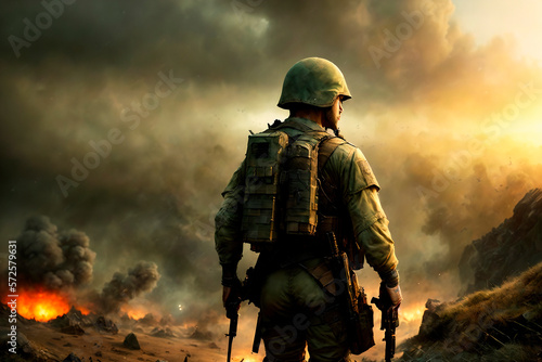 © Oleg_Yakovlev, Naklejka premium soldier, war elements. Generative ai