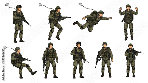 © Bening, Obraz premium Soldiers in various military operations with guns and gear