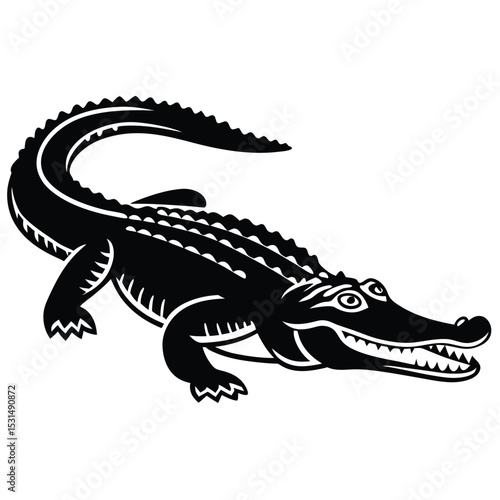 © Bably, Obraz premium Solid black alligator prowls, showcasing sharp teeth and textured skin, creating a powerful silhouette