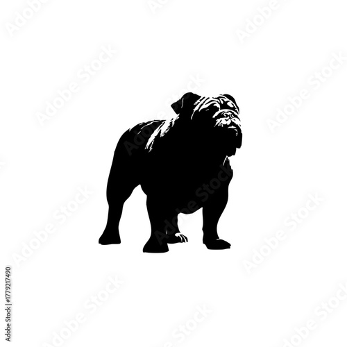 Obraz premium Solid Black Bulldog Silhouette on White Background - Minimalist English...