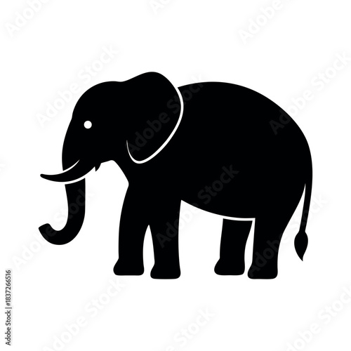 © MdArif, Obraz premium Solid black elephant silhouette, simple minimal vector, white background, flat design