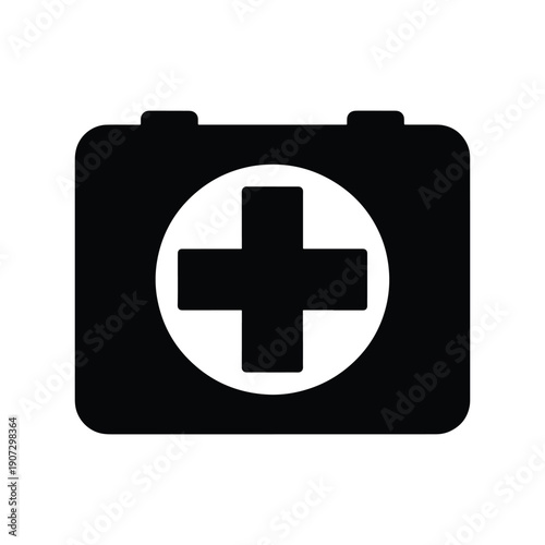 © Rita, Fototapeta premium Solid Black First Aid Box Silhouette Icon Vector