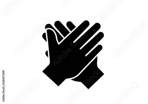 © Amri Grafika, Obraz premium Solid black icon of two hands clapping, a universal symbol for applause, praise, congratulations, and appreciation on a white background