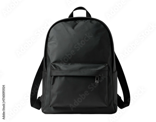 © Azzahra, Naklejka premium Solid black, minimalist backpack with a front pocket, against a dark background
