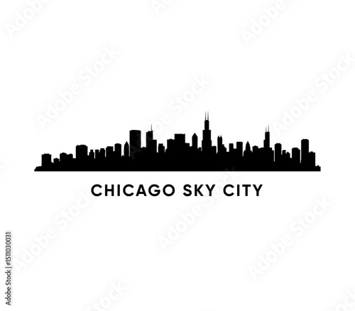 Naklejka premium Solid black silhouette of Chicago city skyline with iconic skyscrapers and urban skyline, on a white background