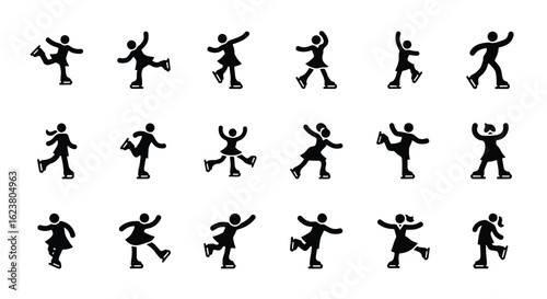© motion-max, Naklejka premium Solid black silhouette sports icon set - figure skater icons isolated on white background