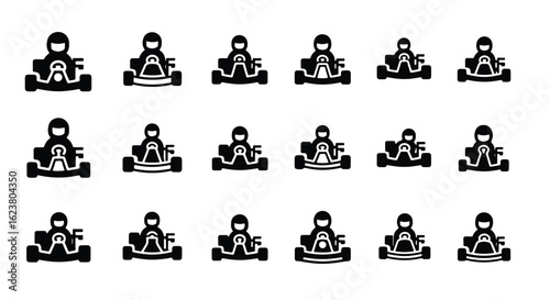 Obraz premium Solid black silhouette sports icon set - go kart racing car isolated on...