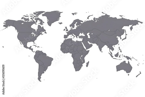 Naklejka premium Solid Gray World Map Isolated on White Background, Simple Geographic Representation for Global Awareness and Educational Purposes